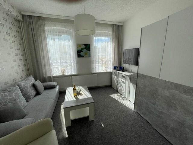 Kurzbeschreibung: Ferienwohnung für 2 Personen, Garten, Strandkorb, TV im Schlafzimmer und Wohnzimmer, WLAN, Bettwasche inklusive, Reinigung inklusive, überdachte Terrasse, Grill, Stellplatz Lagebeschreibung: Die Ferienwohnung befindet sich in der Memelstrasse, in unmittelbarer Strand- und Kurparknähe. Ausstattungen: Die Ferienwohnung Michel ist für 2 Personen ausgestattet. Sie ist gemütlich und modern eingerichtet. Die Erdgeschosswohnung besteht aus einem Wohnzimmer mit LCD-TV, DVD Player und W-LAN, einer Küche, einem Schlafzimmer mit einem 140 x 200 cm Bett und einem Duschbad mit WC.