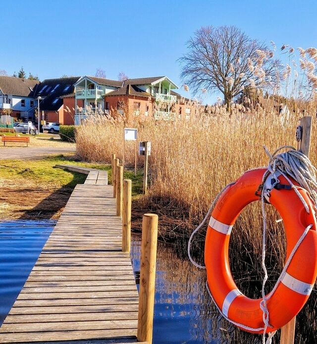 Kurzbeschreibung: Helle, freundliche Ferienwohnung mit direktem Seeblick. Zur Wohnung (2. Etage) gehören 3 Balkone. Die Wohnung ist komplett ausgestattet. Geeignet für bis zu 5 Personen, davon max. 4 Erwachsene oder 4 Personen und 1 Hund. Wir freuen uns auf Sie. Lagebeschreibung: Die Ferienwohnung liegt direkt am Neuensiener See inmitten einer wunderschönen Landschaft die zum Biosphärenreservat Südost-Rügen gehört. Der Yachthafen Seedorf ist nur wenige Gehschritte von der Ferienwohnung entfernt. Vom Balkon haben Sie einen herrlichen Blick auf den Neuensiener See und auf das Jagdschloss Granitz. Geniessen Sie die wunderbaren Sonnenuntergänge. Mit Ihrer Kurkarten haben Sie Zutritt zu den Stränden Sellin, Baabe, Göhren und Mönchsgut. In diesem Bereich können Sie auch die öffentlichen Verkehrsmittel mit Ihrer Kurkarte kostenlos nutzen. Die Bäderbahn oder ein Shuttlebus hält direkt vor dem Ferienpark und fährt Sie nach Sellin. Vom April bis Oktober fahrt ein Shuttlebus bis zur Seebrücke nach Sellin. Diesen können Sie mit Ihrer Kurkarte kostenlos nutzen. Ausstattungen: Die Ferienwohnung ist hell und komfortabel eingerichtet und befindet sich im Dachgeschoss . Mit einer Größe von 66m² bietet sie Platz für bis zu 5 Personen (max. 4 Erwachsene). Zur Wohnung gehören drei überdachte Balkone. Entspannen Sie sich und lassen Sie die Seele baumeln. Die Wohnung verfügt über eine Sitzgarnitur mit Schlaffunktion, einen separaten Essplatz, Flachbildschirm-Fernseher und Radio. Selbstverständlich ist WLAN kostenlos vorhanden. Im Schlafzimmer befindet sich ein Doppelbett, ein Hochbett und ein Kleiderschrank. Die offene Küche ist komplett ausgestattet mit Geschirrspüler, Elektroherd (Ceranfeld - 4Platten), Dunstabzugshaube, Mikrowelle mit Grill + Heißluft, Kühlschrank mit Gefrierfach usw. Bad mit Ganzglas-Dusche/WC und Fön. Die Wohnung wird komplettiert durch einen Kinderstuhl und ein Kinderreisebett.